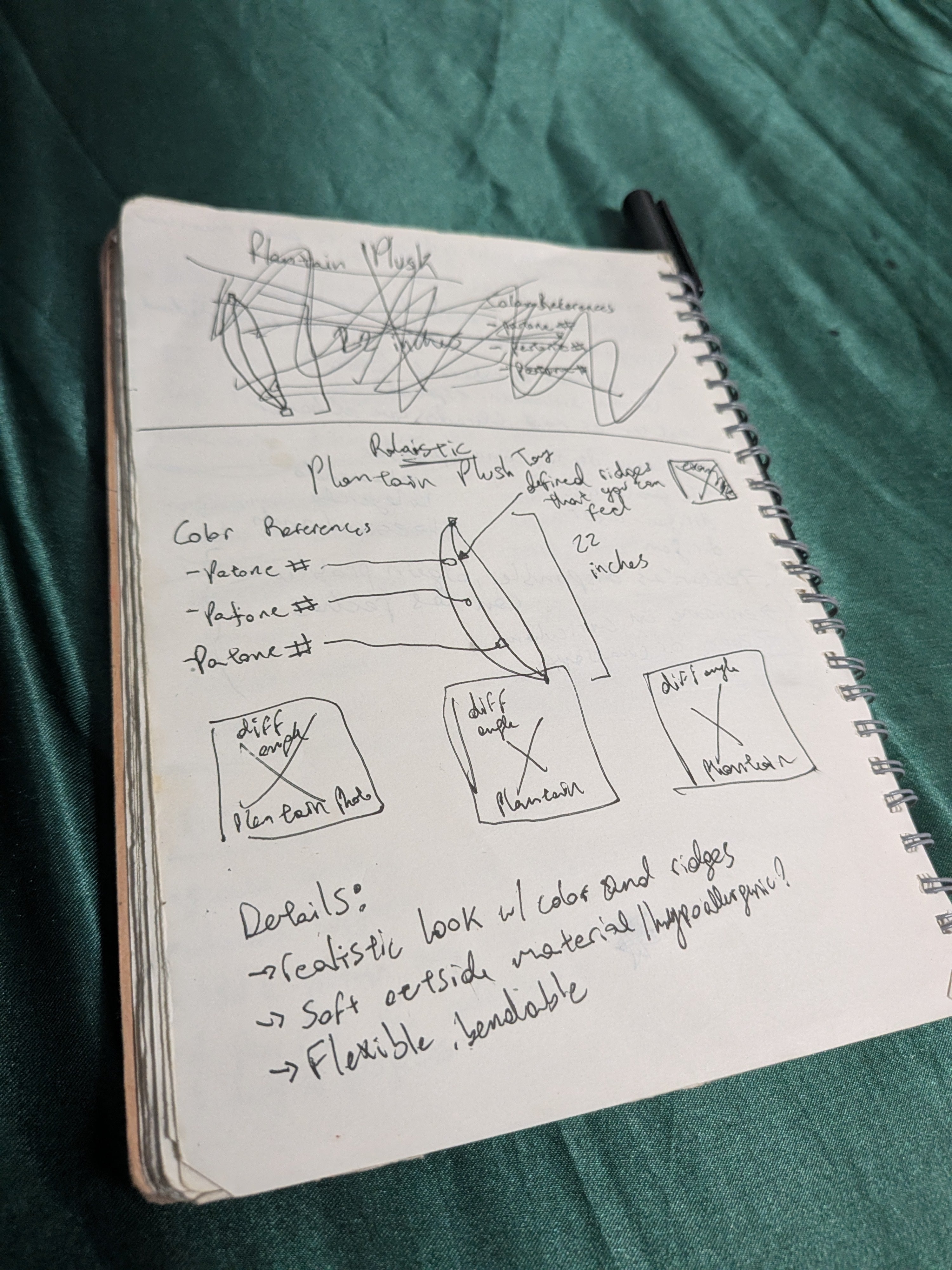 I searched the internet high and low, but all I could find were yellow banana plushies. Cute, but not the same. That’s when I decided to create my own. I sketched out a design, reached out to manufacturers, and after months of trial and error, the Plantain Plushie was born.